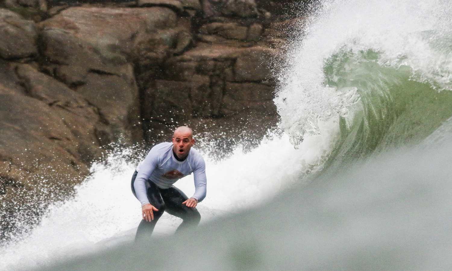 e conta com ondas fortes e emparedadas.